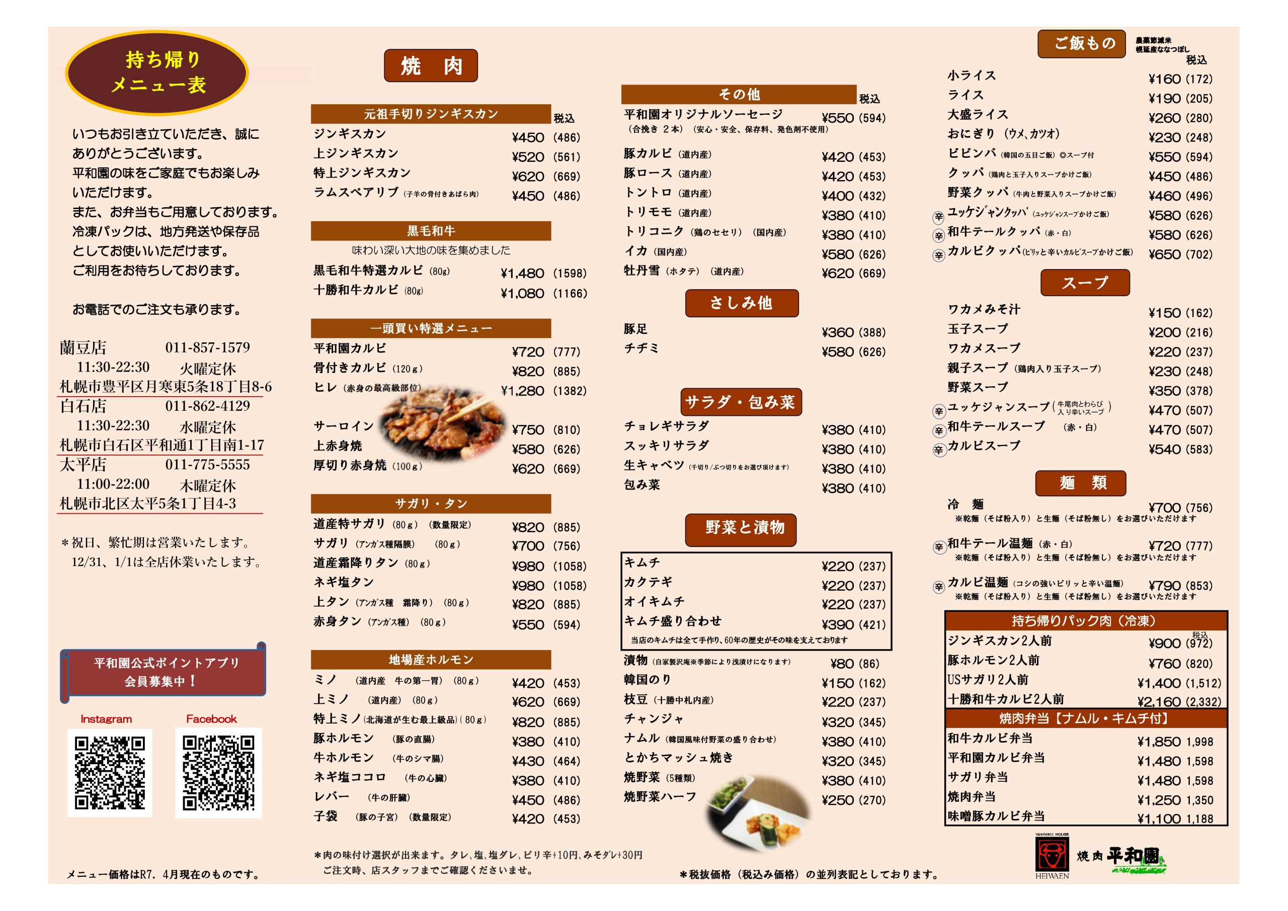 平和園の味をご家庭や野外でのお食事でお楽しみいただける「お持ち帰り・お弁当メニュー」のご案内です。